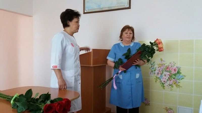 4 апреля администрация, коллектив и профсоюзный комитет перинатального центра поздравили с днем рождения и с выходом на пенсию Бабурову Нурсию Бакешовну