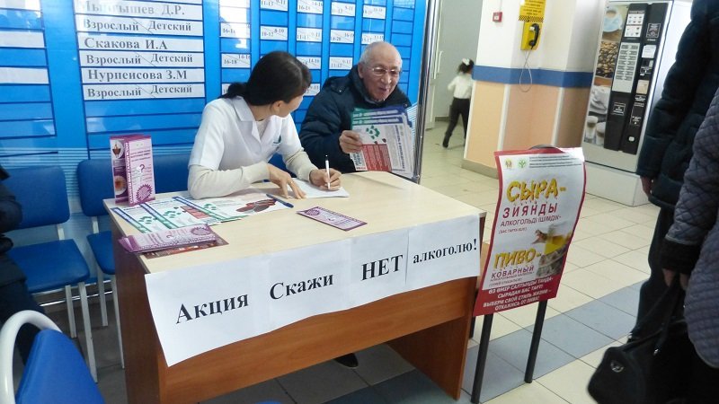 По данным Всемирной организации здравоохранения алкоголь является третьей ведущей причиной болезней и преждевременной смерти во всем мире, опережая в этом отношении табак. В целях повышения уровня информированности населения о последствиях употребления алкоголя и формирования негативного отношения к алкогольным напиткам в стенах нашей поликлиники проведена акция «Скажи НЕТ алкоголю». В рамках данной акции штатные психологи провели индивидуальные беседы с пациентами с раздачей информационных материалов о вреде алкоголя.