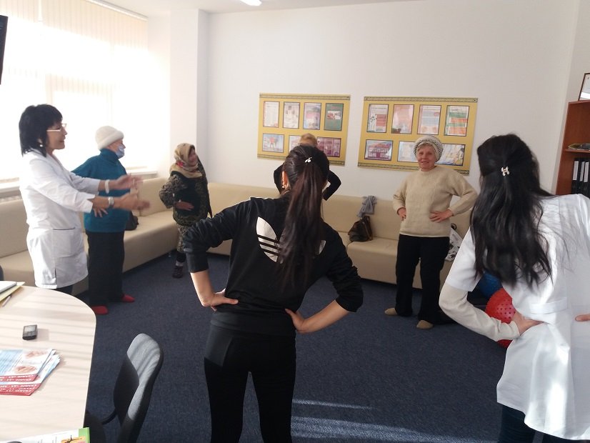 В нашей поликлинике организована и успешно функционирует школа активного долголетия. Обучающая программа для «учеников» школы включает в себя 7 занятий. Каждое занятие состоит из трех частей: первая часть состоит из информационной части (проводят врачи в виде лекции и обсуждения темы); вторая часть – это занятие оздоровительной физической культурой; третья часть включает в себя занятия с психологом.