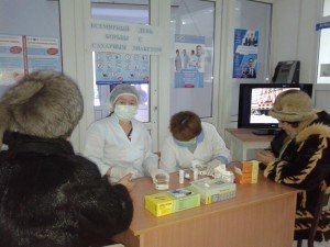 В КГП на ПХВ «Поликлиника №3 г.Экибастуза» 16.11.16г. провели День открытых дверей приуроченого к Всемирному дню борьбы с сахарным диабетом. Акцию провели в холле поликлиники. Всем желающим пациентам было проведено определение уровня глюкозы в крови и розданы информациоонно — образовательный материал. У пациентов с повышеным уровнем глюкозы, рекомендовали консультацию и обследование у врача эндокринолога. Также была трансляция фильма «Диабет рядом».