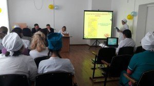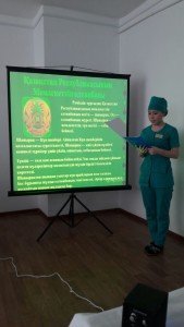 Собрание открыла заместитель главного врача Курмангалиева Гульбахыт Галымовна, рассказав о государственных символах. Была показана презентация «Мемлекеттік рәміздер – менің мақтанышым».