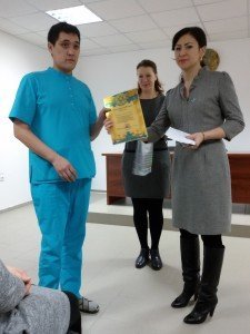 В преддверии празднования Дня первого Президента Республики Казахстан и 25- летия Независимости Республики Казахстан в КГП на ПХВ «Успенская ЦРБ» проведено собрание, на котором главный врач Разиева К.М. поздравила сотрудников и за долголетний труд наградила почетной грамотой и ценным подарком Алдабергенову Дарию Зуфаровну, врача общей практики, а также молодых специалистов, которым вручили благодарственные письма и ценные подарки: