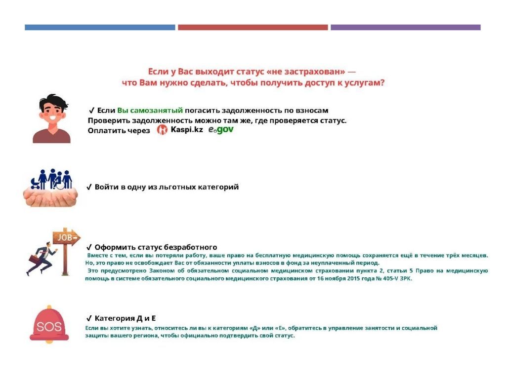 Самый быстрый и точный способ — проверить статус ОСМС/ГОБМП: