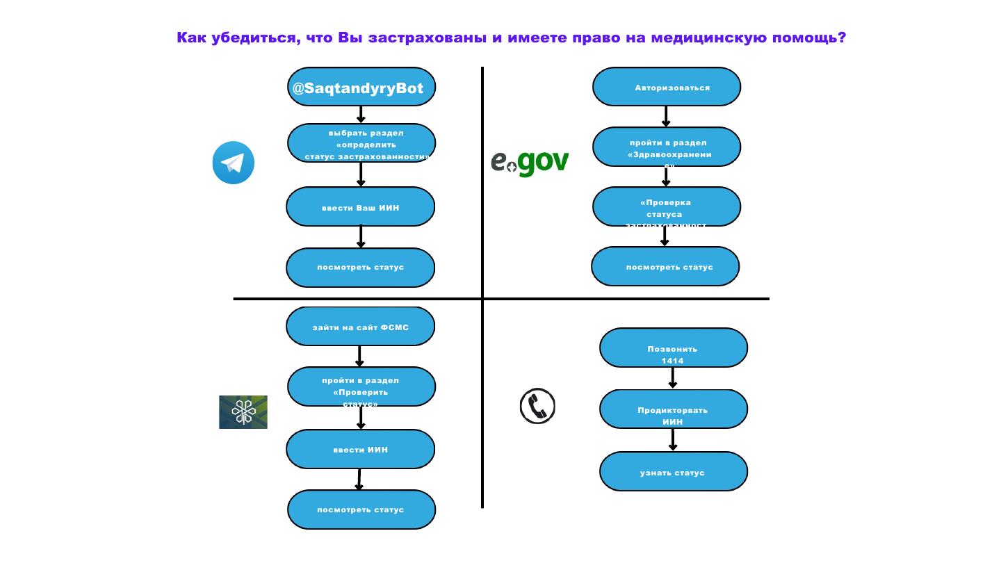 В Казахстане с 1 января 2020 года внедрена система обязательного медицинского страхования (ОСМС), основанное на солидарной ответственности населения, государства и работодателей. Вы знаете что надо сделать для участия в системе ОСМС , как будете получать медицинскую помощь по страховке? Зайдите на сайт Фонда www. fms.kz , на сайт УЗО –depzdrav.gov.kz или позвоните на бесплатный номер телефона Gall—center 1414 или на телефон филиала Фонда в Павлодаре 87182371904 и узнайте подробности. Также можете обратиться за консультацией по ОСМС в свою медицинскую организацию, куда Вы прикреплены