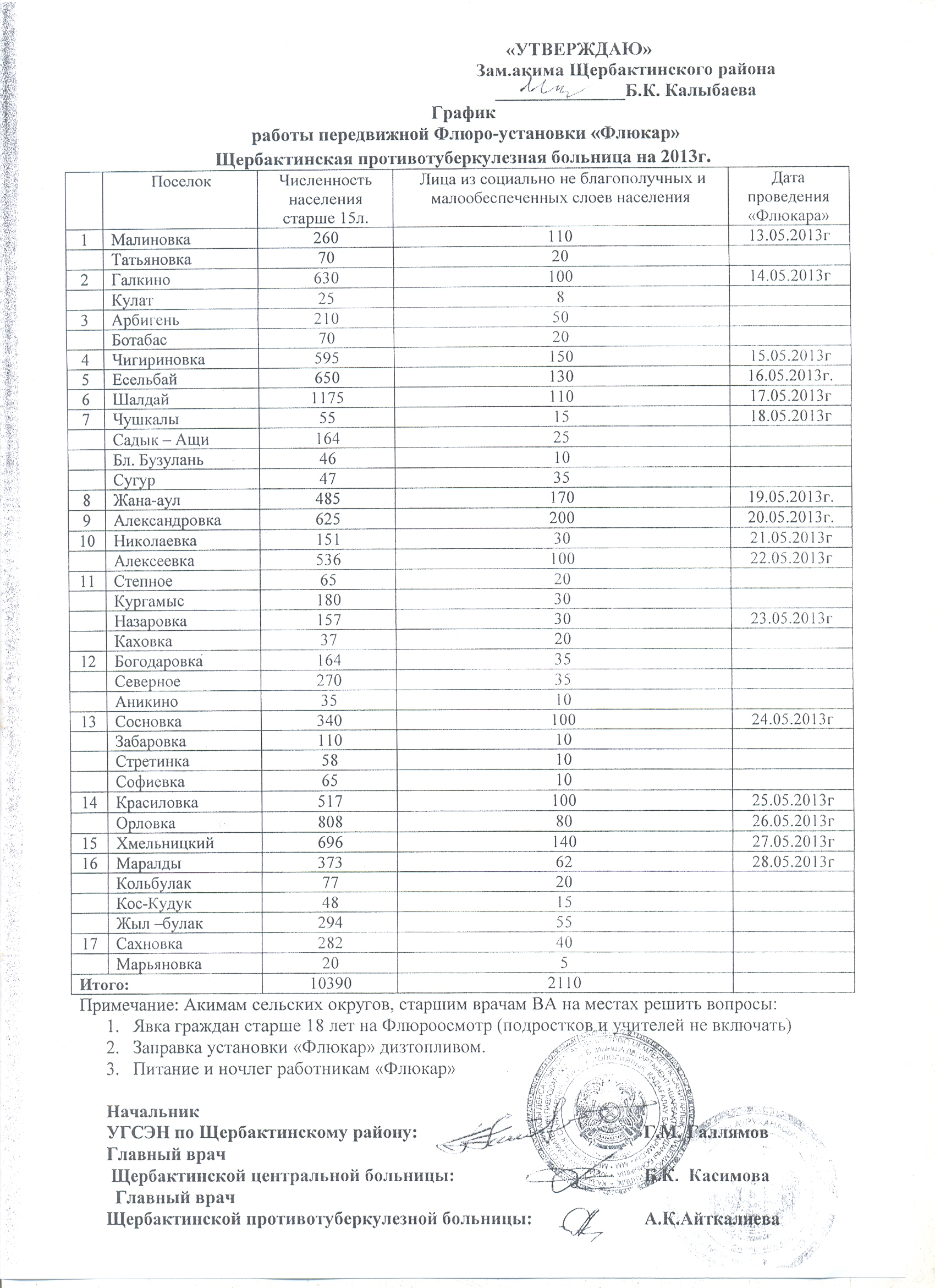 График работы передвижной Флюро-установки "Флюкар" в Щербактинском районе в 2013 годуГрафик работы передвижной Флюро-установки "Флюкар" в Щербактинском районе в 2013 году |